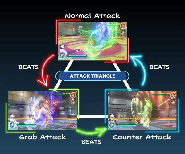 Pokkén Tournament uses a simple system to explain how different types of attacks interact, similar to the game of rock-paper-scissors, but with a twist. Here's a breakdown that’s easy to understand: